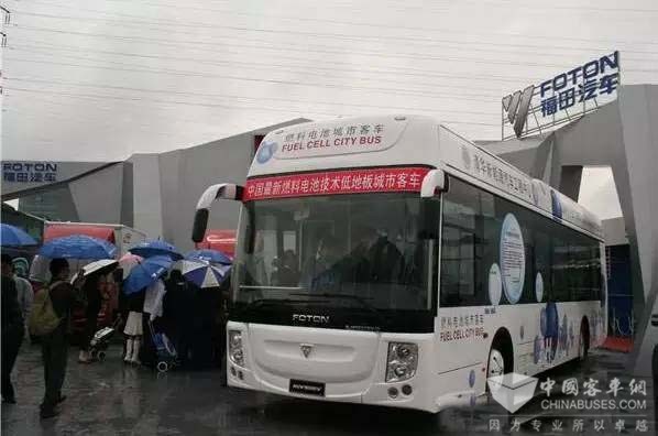 福田汽车在第十届北京国际车展上推出了中国第三代燃料电池技术首款低地板城市客车