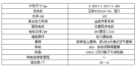 在动力配置上,新锦程搭载功率162kW玉柴国Ⅴ柴油机,36 Ah快充电池,电机额定功率95 kW,最大输出功率130 kW,匹配4挡AMT变速器。从整个试驾过程来看,在起步和中高速等常用工况下,新锦程在的动力表现都令人满意。我们分别测试了纯电动和混合动力模式的加速时间,在0~60 km/h两者相差不大,过了这个车速之后,柴油机的加速优势才有明显体现。新锦程采用4挡AMT变速器,换挡行为完全自动控制,在加速时不像人为操作那样直接,但换挡时挡位过渡更加平顺,乘坐者几乎感受不到顿挫感。