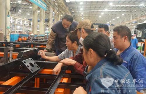 客车的细微之处需要人工操作的一致性来保证。为此,研究院总结了作业指导书等规范,让每一道工序、每一个安装步骤都精细确定,让制造过程有标准可循,并安排相关技术人员逐个生产线培训,做好技术保障。