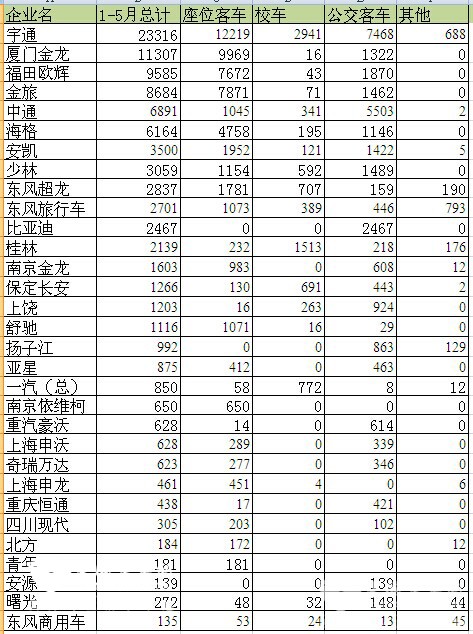 2016年1-5月国内客车市场简析