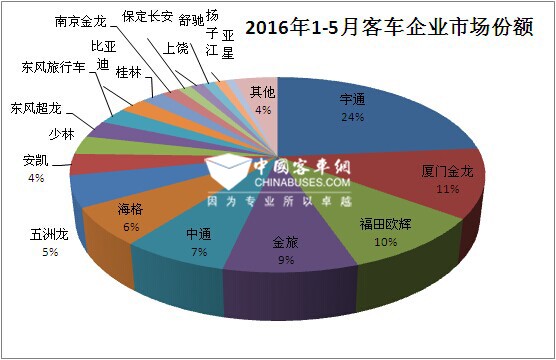 二、1. 2016年1-5月客车市场份额