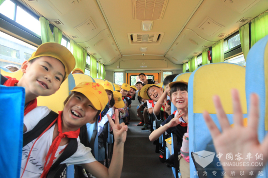 孩子们用“可爱”、“好看”、“坐着舒服”等词语形容海格校车