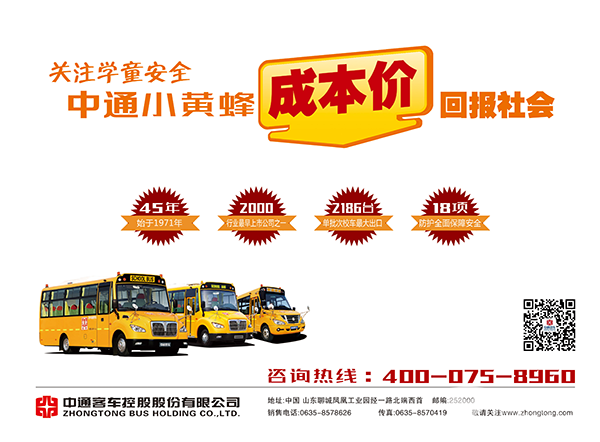 随着暑期的到来,校车购置进入一年中最关键的时期,中通客车因时而动,推出6-9米全系列“小黄蜂”校车,全力冲刺暑期行情,为学童的出行安全保驾护航。