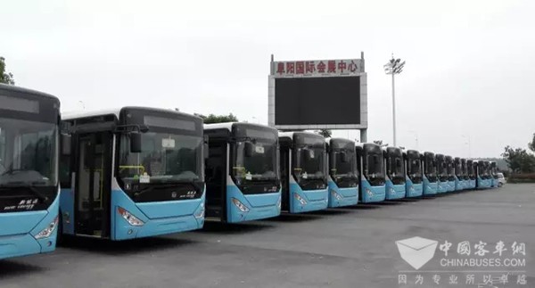 中通客车在阜阳新能源公交中的占比达到100%,这在任何一个地区都是一个了不起的成就。在2016年5月份中通客车于北京召开的第二万辆新能源客车交付仪式上,阜阳公交荣选为中通客车的“新能源客车金牌用户”。