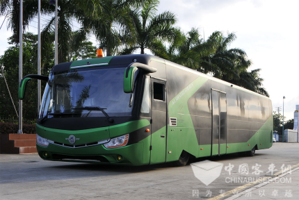 据了解,2013年,五洲龙向沙特出口了第一批51辆机场摆渡车。为了保证车辆顺利运营,前期,五洲龙客车做了大量调研,进行针对性研发,力求产品符合当地的运行环境。为适应沙特炎热干燥的热带沙漠气候环境,五洲龙机场摆渡车采用世界最先进的车架和车身整体电泳涂装技术、高强度的渗锌方钢和复合材料(HSC)车身蒙皮、耐高温胶等,有效保证了车辆安全经济双重保证,延长了车辆使用寿命。