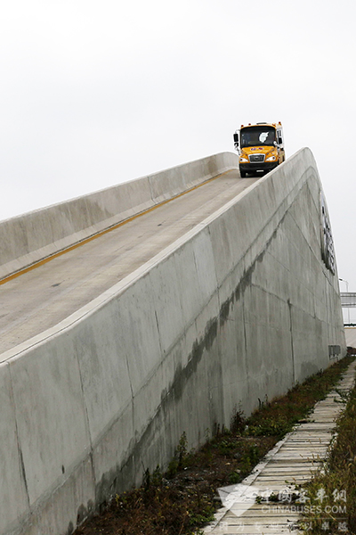 宇通校车平稳驶过平稳驶过45°倾斜的路面