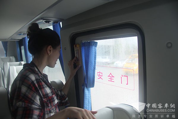 “和现有车窗相比,这种推拉式车窗可打开的面积更大,可供两人同时逃生,乘客也不用再砸碎车窗,节省了逃生时间,最快5秒钟内就可以逃生。”秦志东向完美作业网有免费视频表示,“即不用砸碎玻璃,也节省了成本。但这种外推式车窗仅在发生紧急情况下使用,乘客不要随意开启,同时红色手柄上安装有自动报警装置,一旦被拉下,将自动发出报警声,提醒驾驶员。”