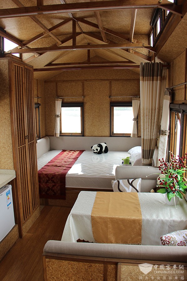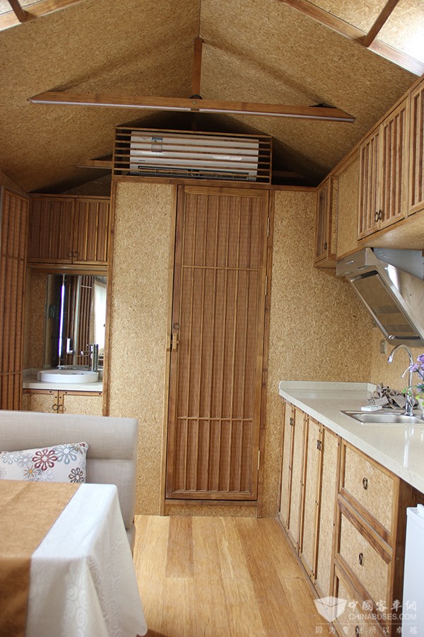 据悉,该款全球首发的竹钢营地房车是中通客车与营地开发企业联手打造的一款外形新颖、天然环保型的全新产品,中通客车具有独家专利。全部材料采用高性能竹基纤维复合材料(俗称竹钢,是采用慈竹等天然竹材经高温高压处理的成材)和高强度麦秸板(是以麦秸为原料,经高温高压处理而成的材料)等环保材料加工而成的。用上述材料制造而成的营地房车产品具备色泽自然、气味温馨,无任何有害气味释放,材料强度和防腐性均满足户外车辆的使用要求,且制造与加工性能难度不高。因此应用竹钢及麦秸板的营地房车在环保性能和加工成本等方面具有绝对优势。