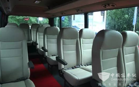 康恩迪作为高端商旅客车,其内饰不仅配备了高性能的冷暖空调、乘客阅读灯、还采用米色天然皮革设计了豪华座椅,优越的减震系统更是为提供静谧舒适的移动体验打下了坚实的基础。
