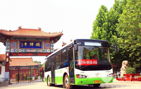 东光铁佛寺门前的海格纯电动车