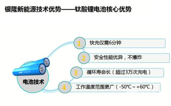 银隆双源无轨电车采用全球领先的“银隆钛”电池技术,该项技术是世界目前唯一可实现6分钟快充放、耐宽温(-50℃—+60℃)、30年循环使用寿命、不起火不爆炸高安全性的前沿科技,集电池快充与安全技术于一身,本车还可以在建有充电站的地区作快充纯电动客车使用,每次充电只需6分钟,便可确保实现全天候运营,为城市以及消费者真正打造绿色、安全、便捷、高效的出行体验。