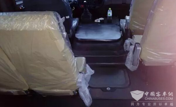 e-COUNTY采用尺寸较小的发动机舱,使得驾驶空间更大,发动机舱带杯座,为驾驶员带来便利性,同时发动机舱及变速箱采取前移设计,能够改善第二排及第三排座椅的通过性和舒适性。车辆座椅靠背和坐垫长度适中,乘坐舒适性更高,并且第二排座椅可装配两个座椅,核载人数达23人。