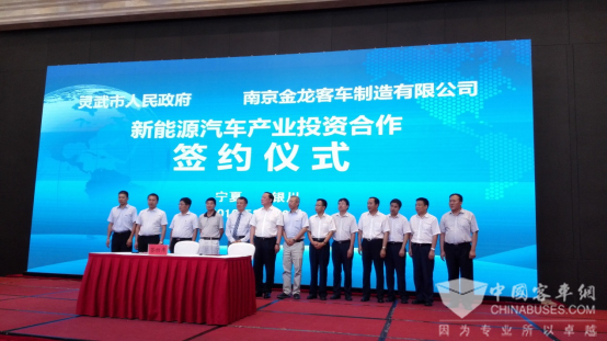 2016年8月16日,南京金龙客车制造有限公司与灵武市人民政府就宁夏新能源汽车制造出口产业基地项目签约仪式在银川国际交流中心举行。南京金龙董事长黄宏生、副总裁金晓辉、以及银川市委市政府、灵武市委市政府领导出席此次签约仪式。