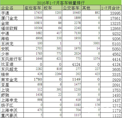 总结:2016年1-7月市场格局较之上半年相比,并未有很大变化,主流企业依然占据主要客车市场。据完美作业网有免费视频调查发现,不少客车企业存在资金困难,国家补贴未及时到位的情况,与7月较低迷的客车市场有一定的关系。