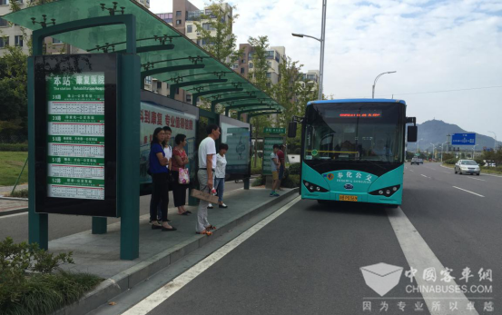 奉化地处长三角南翼,东海之滨,美丽的城市风光是其发展的“瑰宝”。奉化市本次投放的10辆比亚迪K8均采用“青山绿水”的喷绘设计,彰显节能环保风范,与城市环境融为一体。据介绍,K8车长10.5米,宽2.5米,最高车速达69km/h。整车采用两级踏步设计,动力电池布置于车厢地板下,进一步扩大了整车内部空间。在降低整车重量、提高整车安全性能的同时,将乘客座椅数量增加到38个。相比同类燃油车型,K8使用峰谷电充电,经济优势明显,每辆纯电动公交车的用电费用是之前燃油版车型燃料费用的一半。同时,纯电动公交车更加绿色环保,乘客可远离传统燃油车的噪音和尾气污染。
