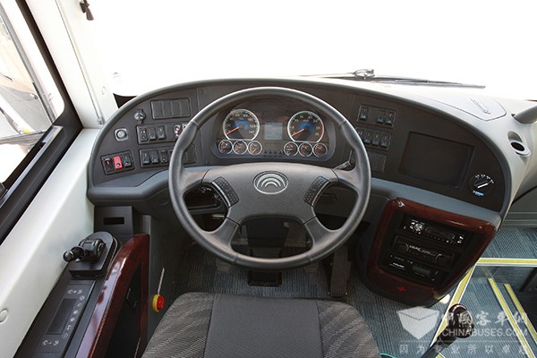 此外,作为景区专用车,该车还标配了全景超大天窗,匹配合理变速箱,既为乘客观光、欣赏美景提供便利,又做到了结合景区淡季旺季特点,通过调整挡位模式,实现旅游包车时车辆油耗的经济性。