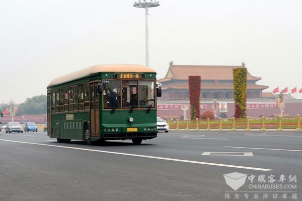 行驶在北京街头的银隆新能源观光车