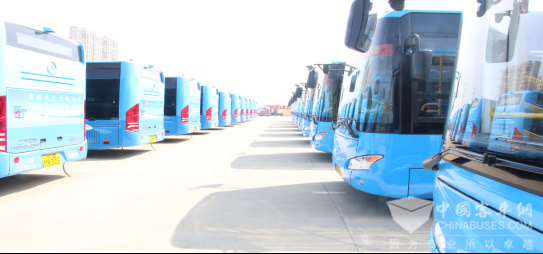 整装待发的51辆常隆YS6104GBEV纯电动公交车队