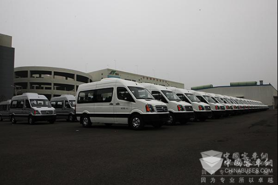 除订单不断之外,黄海瑞途还频频在重大活动中露脸。瑞途的首次公开亮相是在2015年9月第九届夏季达沃斯论坛上,20辆瑞途纯电动轻客作为工作用车负责接送参会代表及相关服务人员。选择在达沃斯论坛这样一个全球瞩目的重要场合亮相,也表明了黄海瑞途对“欧系轻客价值标杆”这一称号的充分自信。