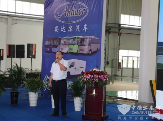 接着,跃迪集团董事长吕洪涛致辞:欢迎各位领导、行业同仁及媒体嘉宾共同见证安达尔新能源汽车下线这一重要时刻,同时表示今后将继续加大科研投放力度,创新生产更智能更环保更多样化的系列新能源客车,以顺应时代发展趋势,为城市公共交通事业的发展做出更大的贡献。