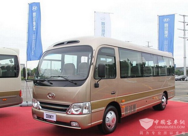 四川现代客车工厂生产基地落户成都,采用大量韩国进口生产线设备,全面导入韩国现代先进汽车制造工艺和品质管理体系,现已成为具有国际竞争力的商用车制造商。