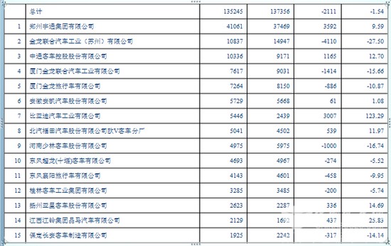 其中,座位客车总销量11万辆左右,同比下降12%;公交客车总销量8.8万辆左右,同比下降12%;校车销量2.5万辆左右,同比略有增长;其他客车0.7万辆,同比略有增长。