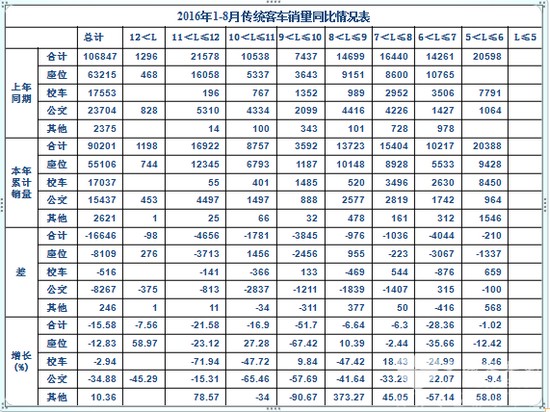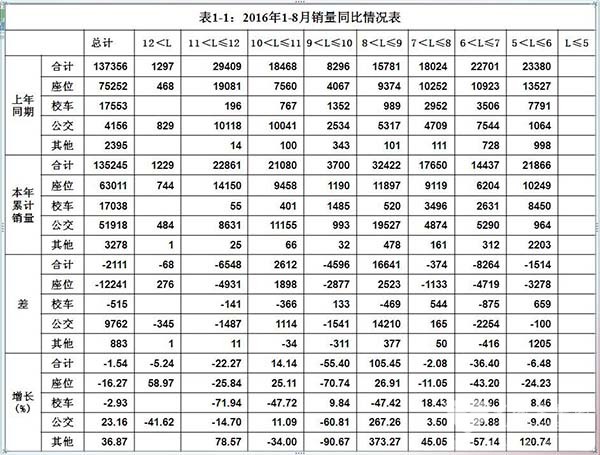 佘振清表示,2016年1—8月份,中国客车统计信息网重点关注的50家企业累计销售5米以上客车135245辆(为了保证同比的真实性,数据中剔除了福田的风景海狮系列),同比下降1.54%,其中座位客车(公路客车)下降16.27%,校车下降2.93%,公交客车增长23.16%。