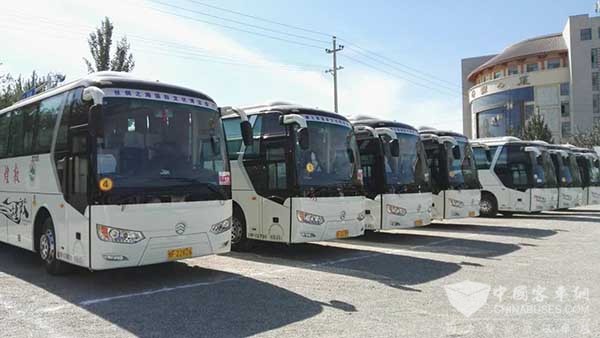 完满服务敦煌文博会 金旅客车驰骋大漠