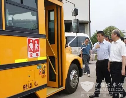 谢光华一行先后来到安源客车产品展区和总装车间,参观了安源客车最新研发的美式校车、低地板内循环电动车、自行式和拖挂式房车、纯电动城市公交客车、H级疫苗冷链物流车等新产品,详细察看和了解各款安源产品的内部设施和性能。