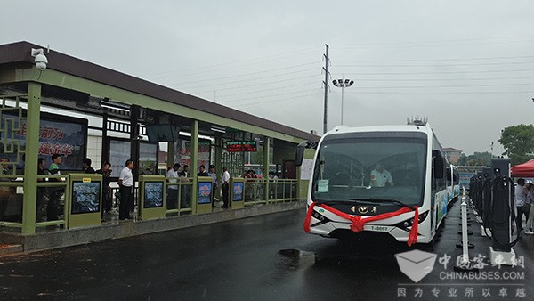 金华BRT3、4号线也是采用零污染、零排放的青年牌纯电动BRT,是节能减排的绿色出行的先锋。不同的是,1、2号线运行距离在20公里上下,而3、4号线跨城乡、跨城际,运距更长。其中,3号线全长约70公里,对电动汽车的电池容量是一大考验。为提高效率,解决电动汽车续航问题,青年汽车技术人员摸索出了全球首创的“充换结合”的纯电动公交运营模式。