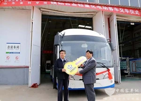 沂星首辆镁铝合金轻量化电动客车交车