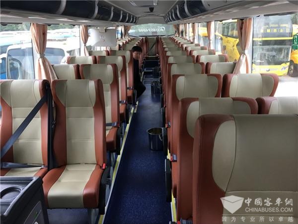 车内宽敞的双排座位上,每个座位都配有安全带,贵州旅途新运业公司张华总经理告诉记者,定制巴士是“一人一座”,确保每一名学生在车内乘坐安稳。