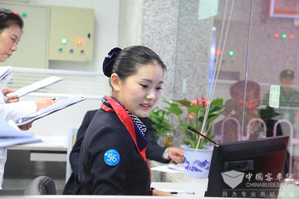 “乘客您好,10点30分从长沙开往北京的长途班车开始检票,请依次排队上车……”2016年10月30日上午,结束首日的理论知识竞赛后,参赛选手们紧张投入到售票、检票两项实际操作竞赛。