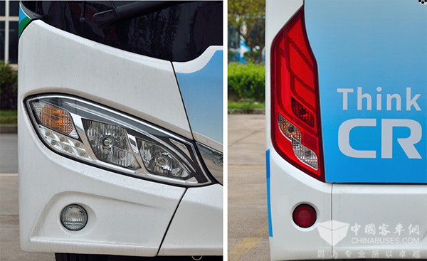 1、C08L采用全新前后围造型,精心设计的整体式大灯和前围覆盖件勾勒出整车大气时尚的外观,让8米级客车顿时拥有了堪比10米级大型车的视觉效果。