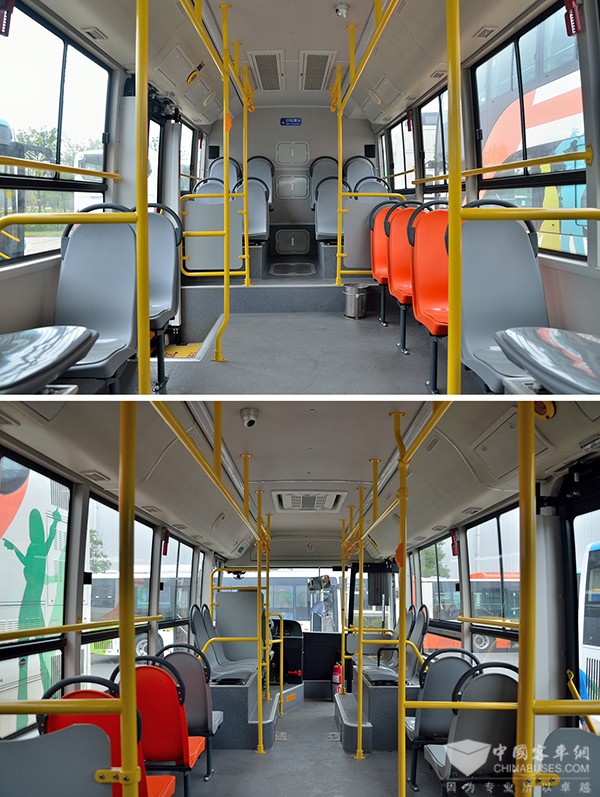 3、C08L内座位采用大间距常规布置,有效避免了不少同级车型采用的地铁座横向布局模式,不但为乘客们带来了更加舒适的乘车体验,也为运营高峰节省出更多站立空间。