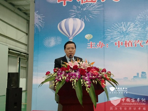 中植汽车董事长陈汉康致辞 陈汉康介绍,中植汽车成立于2014年,总部位于成都,注册资本30亿元,是一家专注于新能源客车及专用车的技术研发、整车制造、市场推广和后市场服务的全产业链现代化高新技术企业。中植汽车将科技研发和产品创新视为永恒的战略,始终专注于国内外新能源汽车领先科技的追求、研发和推动,并致力于将领先科技应用与客户优质体验相融合,实现中植汽车“智”造精品,服务社会经济发展,造福百姓,福祉生活!