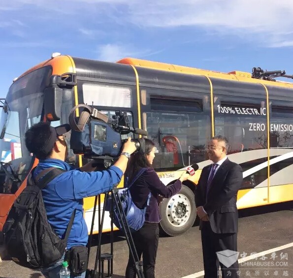 2016年11月17日消息:“武汉制造”纯电动城市客车在摩洛哥马拉喀什持续引发关注,扬子江纯电动城市客车的新客人是上海东方卫视,东方卫视记者在车辆前对扬子江汽车集团总经理进行了专访。