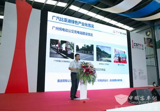 2016 年 11 月 19 日,由广东省静态交通协会联合主办的2016中国城市静态交通论坛(简称:CSTF 2016),在广州番禺亚洲国际游艇城盛大举行,广州广汽比亚迪新能源客车有限公司副总经理刘关生受邀参加,并做了以“城市公交电动化的机遇与对策”为主题的演讲。