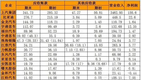 不仅如此,多数客车企业的新能源补贴款,已经远高于同期的净利润,甚至与营业收入相近。其中,作为行业龙头,宇通客车(20.560, 0.00, 0.00%)截至上半年的应收账款为 112亿元,相比年初增加近13亿元,其新能源补贴款接近60亿元,而其上半年的营业收入为132.68亿元,净利润为12亿元。中通客车(17.200, 0.00, 0.00%)上半年的营业收 入将近40亿元,而新能源补贴款就超过40亿。
