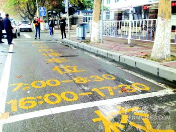 “自施划了校车停车位,这十多天学校门前畅通多了。”乔羽小学王姓副校长说。