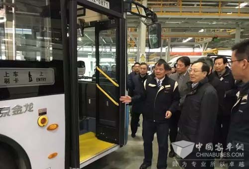 2016年11月26日上午,江苏省委副书记、南京市委书记吴政隆在溧水区委书记谢元等领导的陪同下,来到南京金龙客车制造有限公司考察调研,听取了南京金龙董事长黄宏生关于南京金龙纯电动客车的发展历程,电池PACK、增程器等核心零部件基本情况、以及2015年经营成果和2016年经营目标的汇报,详细询问了南京金龙新能源汽车生产经营情况,并体验南京金龙新能源汽车产品,表示南京市将全力支持开沃新能源汽车在南京地区发展,支持率先在公交、通勤车市场推广使用南京金龙新能源汽车。