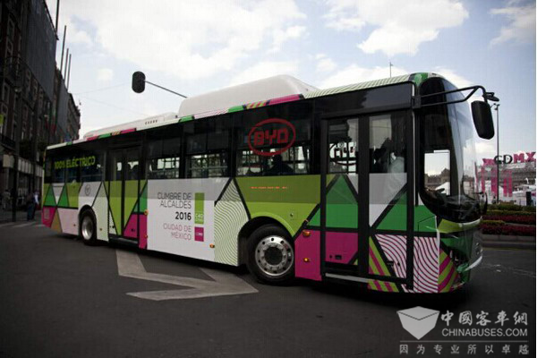 服务于峰会的比亚迪纯电动巴士