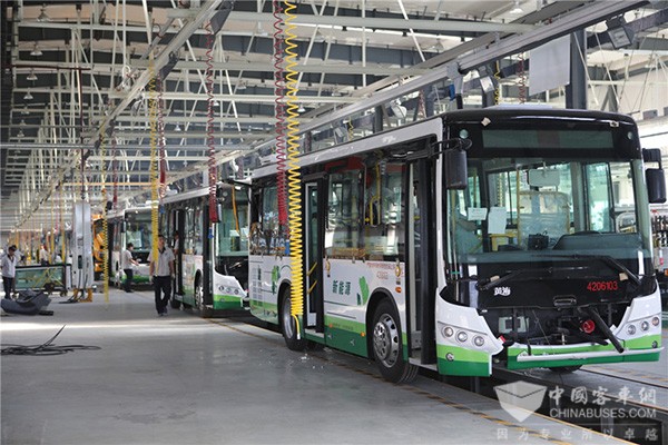2016年6月,投资15.97亿元建设的黄海新能源客车生产基地正式投产运营,其中主厂区生产车间厂房总面积90048平方米,副厂区生产车间厂房总面积40536平方米,设计年产量10000辆。新基地建设有全套新能源客车生产线,其中整车阴极电泳、整车涂装自动化滚床输送系统、焊装、底盘、内装生产线板式链自动化输送系统等生产配套设施,均为目前国内客车行业领先水平。黄海新能源客车基地的建成投产将全面提升黄海客车在新能源汽车产能、制造工艺以及自动化生产等方面的水平,黄海客车也将进入快速发展的新时期。项目投产以来,已先后生产多个批量的高品质新能源客车产品。