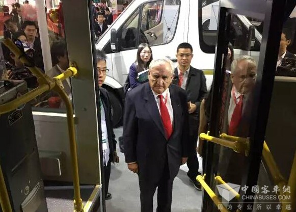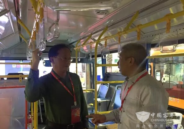 深圳粤运集团董事长禤宗民、技术副总杜卓才、技术部业务总监朱军和技术部经理吴兰钧,也纷纷莅临南京金龙展位。粤运集团董事长禤宗民在南京金龙副总裁金晓辉的陪同下试乘了展示的公交系列后,针对深圳市场为南京金龙提出来宝贵的意见。