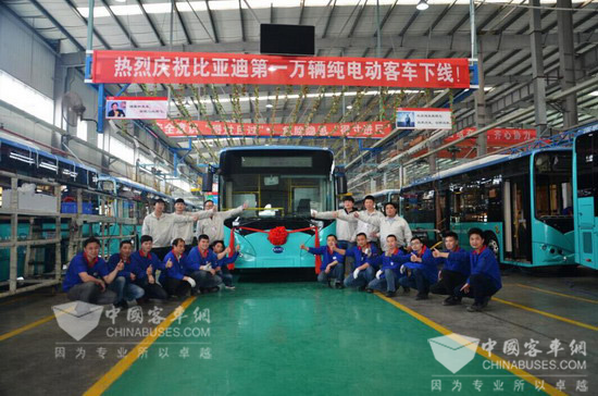 2016年4月,比亚迪全球第10000辆客车在长沙基地下线,从1-10000,比亚迪仅用了6年时间。在这6年时间里,比亚迪客车依托着技术、和全产业链的优势,快速发展。2010年,比亚迪在全球首次提出公共交通电动化解决方案,通过“纯电动大巴+纯电动出租车”的组合,来代替传统燃油公交车和出租车,比亚迪率先在公共交通领域实现电动化。“公共交通电动化解决方案”的理念一直影响至今,得到业内的广泛认可。