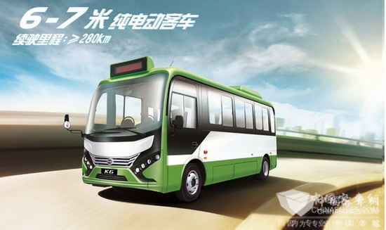 2016年5月,深圳市南山区首条微循环巴士线路开通,5辆比亚迪K6纯电动巴士上路运行,其迷你卡通的造型十分抢眼。车身虽小,技术含量丝毫不减:K6通过搭载高容量铁电池,并采用轻量化设计,续航里程可达280公里,是同级别纯电动公交车中续驶里程最长的。