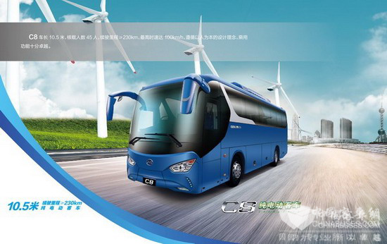 C9也是比亚迪C系列产品的开山之作,继身长12米的C9后,比亚迪又推出10.5 米的纯电动客车C8,它延用了比亚迪在智能化上的先进技术,为用户提供更多的长度选择。