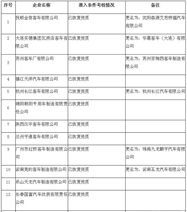 与此相对应的是,2013年和2015年,工信部分别发布了两批《特别公示车辆生产企业》名单,共涉及140家车企。并公示称:截至2015年10月31日,特别公示车辆生产企业中有12家企业提出准入条件考核申请,已通过考核,恢复受理其新产品申报;22家企业近期提出准入条件考核申请,正在组织考核。这12家通过考核的企业当中,名列第三的就是坑了全行业的吉姆西客车公司。