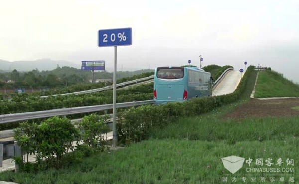 爬坡对于电机直驱的纯电动大巴而言,是一项重大考验。C11从坡底以静止状态起步,轻松通过了大长坡道,说明动力性能强劲。