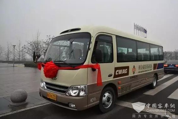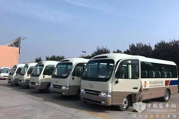 2016年11月,西安咸阳国际机场汽车运输有限责任公司通过四川现代西安经销商-西安国辉汽车销售服务有限公司首次采购了5台四川现代康恩迪客车。作为关中城市群目前唯一的国际机场,咸阳国际机场是中国重要的门户机场,为西北地区最大的空中综合交通枢纽。西安咸阳国际机场汽车运输有限责任公司积极响应市发改委要求,以西部机场集团“畅想履行”产品为载体,依托“机场至高铁站”既有线路打造“机场巴士快线”。并在机场巴士快线中投运现代康恩迪中巴车,以硬件提升打造线路新形象。陕西作为著名的旅游地,有世界八大奇迹的兵马俑,也有中华五大名山之一的华山,是中外游客必去的地方,高铁站与机场之间的“空铁联运”将进一步提升机场巴士快线的知名度。四川现代康恩迪客车作为机场巴士快线的载体,承载咸阳国际机场与西安高铁北站之间客运量,此外以“高端商旅新标准”为理念的康恩迪,将带给旅客更安全、更舒适、更高端的乘车之旅,提高“机场巴士快线”新品牌在合作方、媒体、客户中的知名度